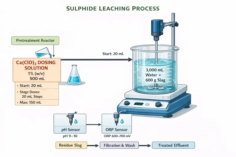 The fourth method is chemical leaching using calcium hypochlorite (CaClO₂). This process chemically oxidizes sulfides at relatively low temperatures, providing a faster alternative to biological methods without the need for extreme pressure or heat. It offers flexibility and lower capital cost, though reagent handling and process control are important considerations.